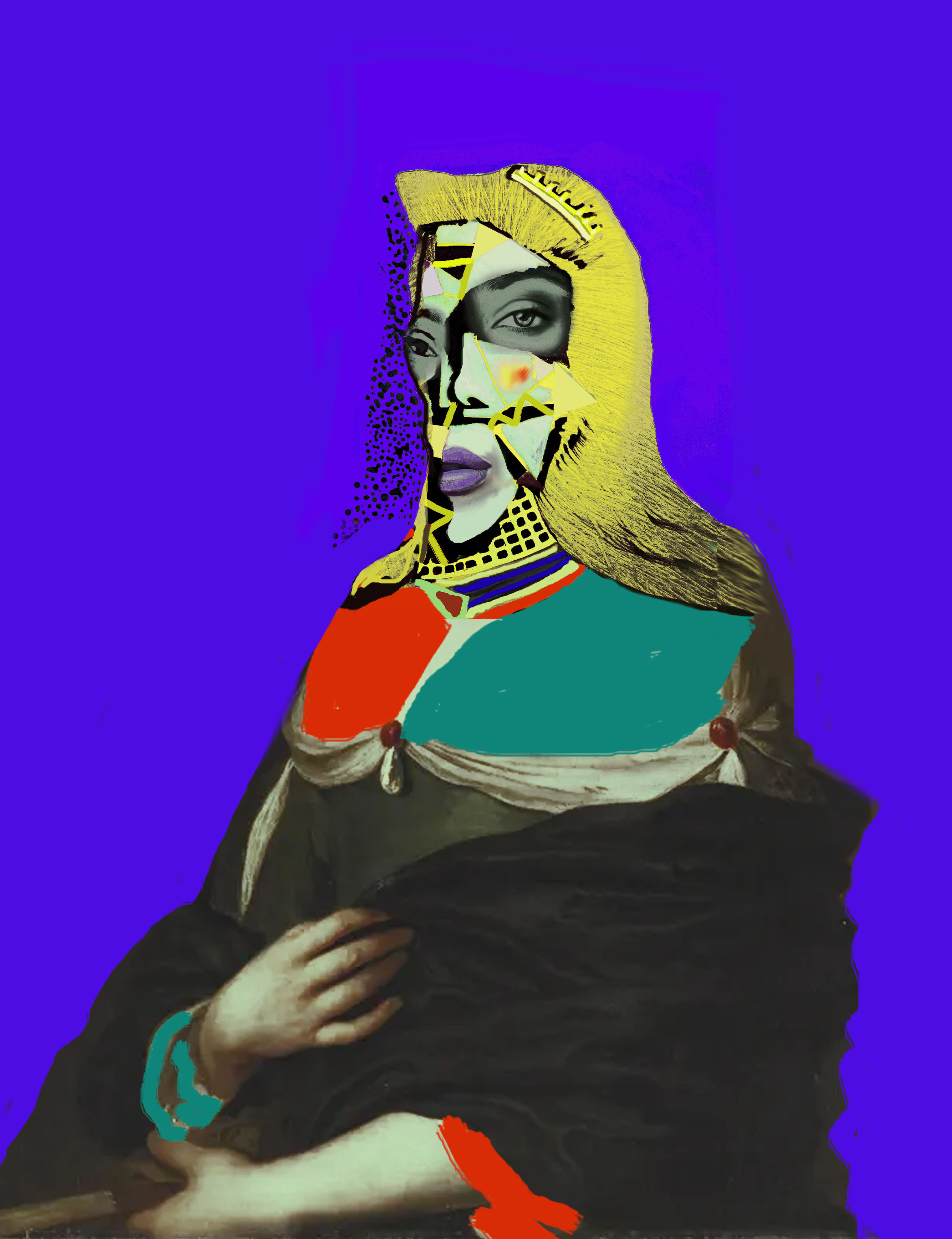 A spectral vision: the youthful incarnation of a renowned female collector, conjured from fragments of media mythologies and intimate confidences. Her posture, borrowed from the lexicon of old master paintings, blurs the threshold between invention and memory, inviting the viewer to contemplate the origins of identity within the art-historical canon.